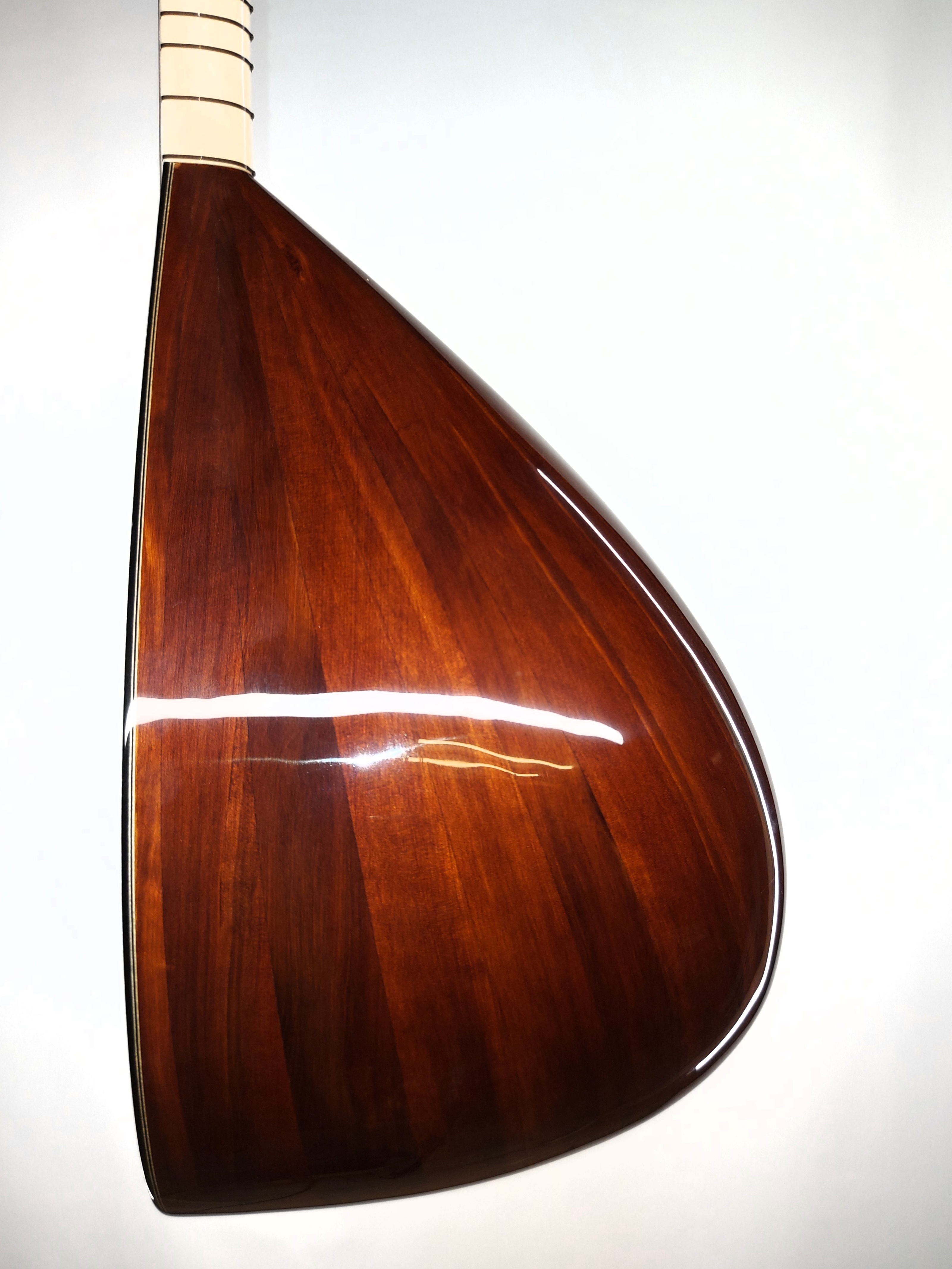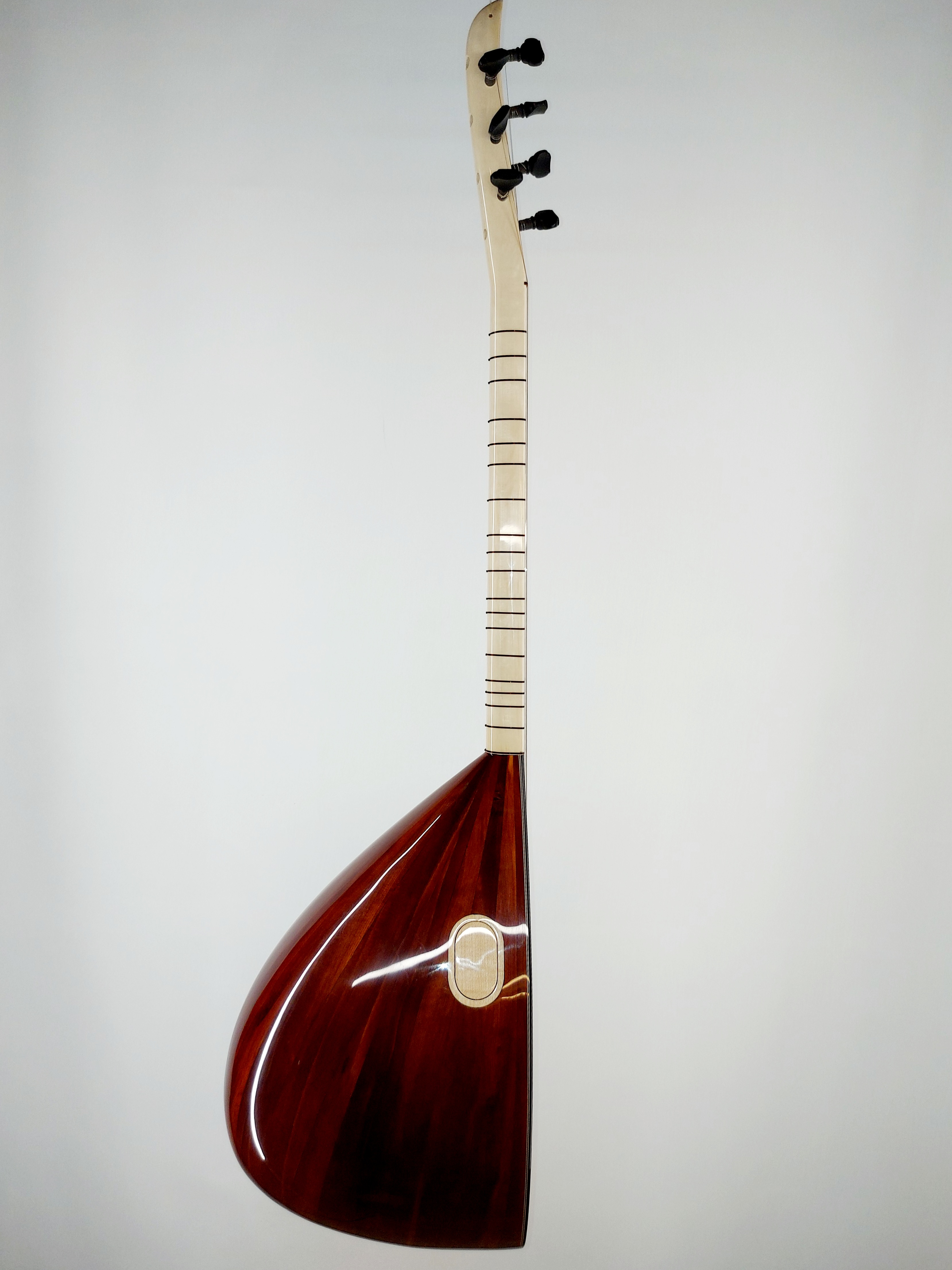 Bağlamamız 40 cm tekne boyunda, kısa saplı, tekne: YAPRAK ARDIÇ, kapak: Birinci sınıf Borçka tavşan ladini, Sap: Birinci sınıf freze akgürgen olup en az iki yıl dört mevsim kurutulmuştur. Bu nedenle sap atması veya tesviye gereksinimi duymaz. Tel yüksekliği oldukça düşük olup çalımı çok rahat. bağlamadan gerek volüm gerek çalım rahatlığı ve uzun ömrüyle üstündür. Tüm bağlamalarımız 1 yıl belgeli garantili olup onarım ve bakımları bizzat Kenan Usta tarafından yapılacaktır.